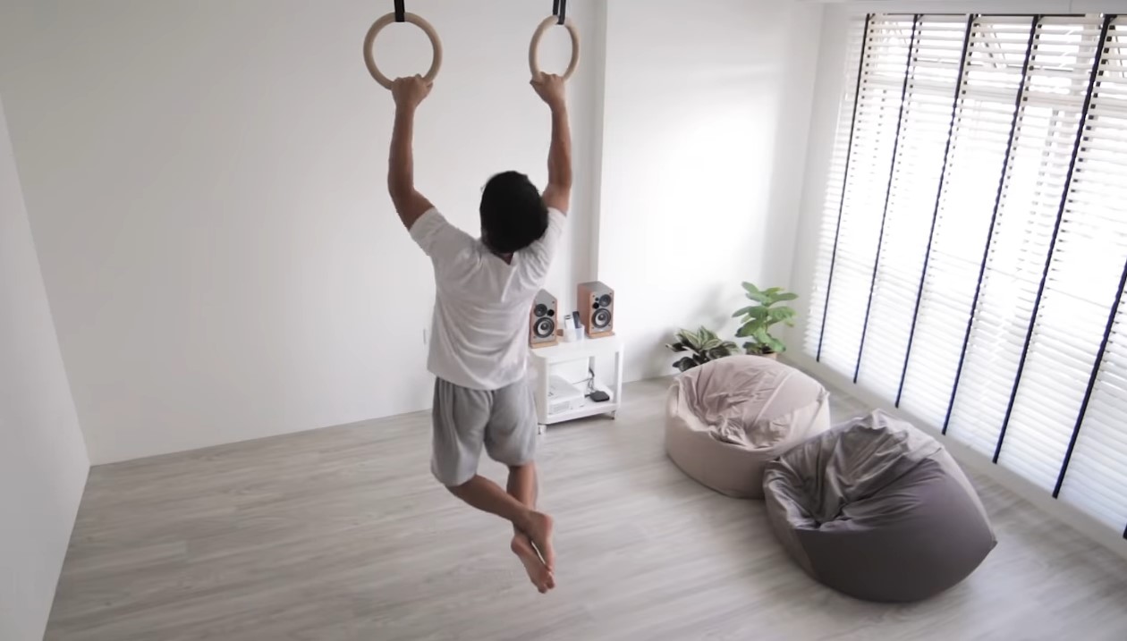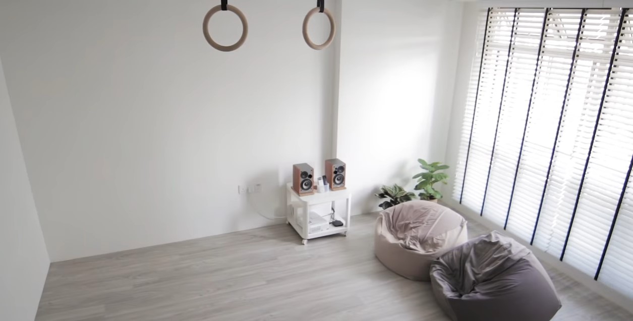 Thiết kế phòng khách tối giản kết hợp không gian tập luyện thể thao